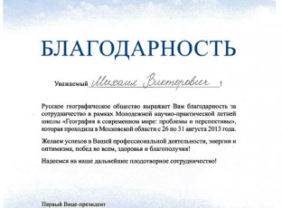 2 сентября 2013Выступление М.В. Слипенчука в Молодежной летней школе РГО (Абрамцево, 30 августа 2013 года)