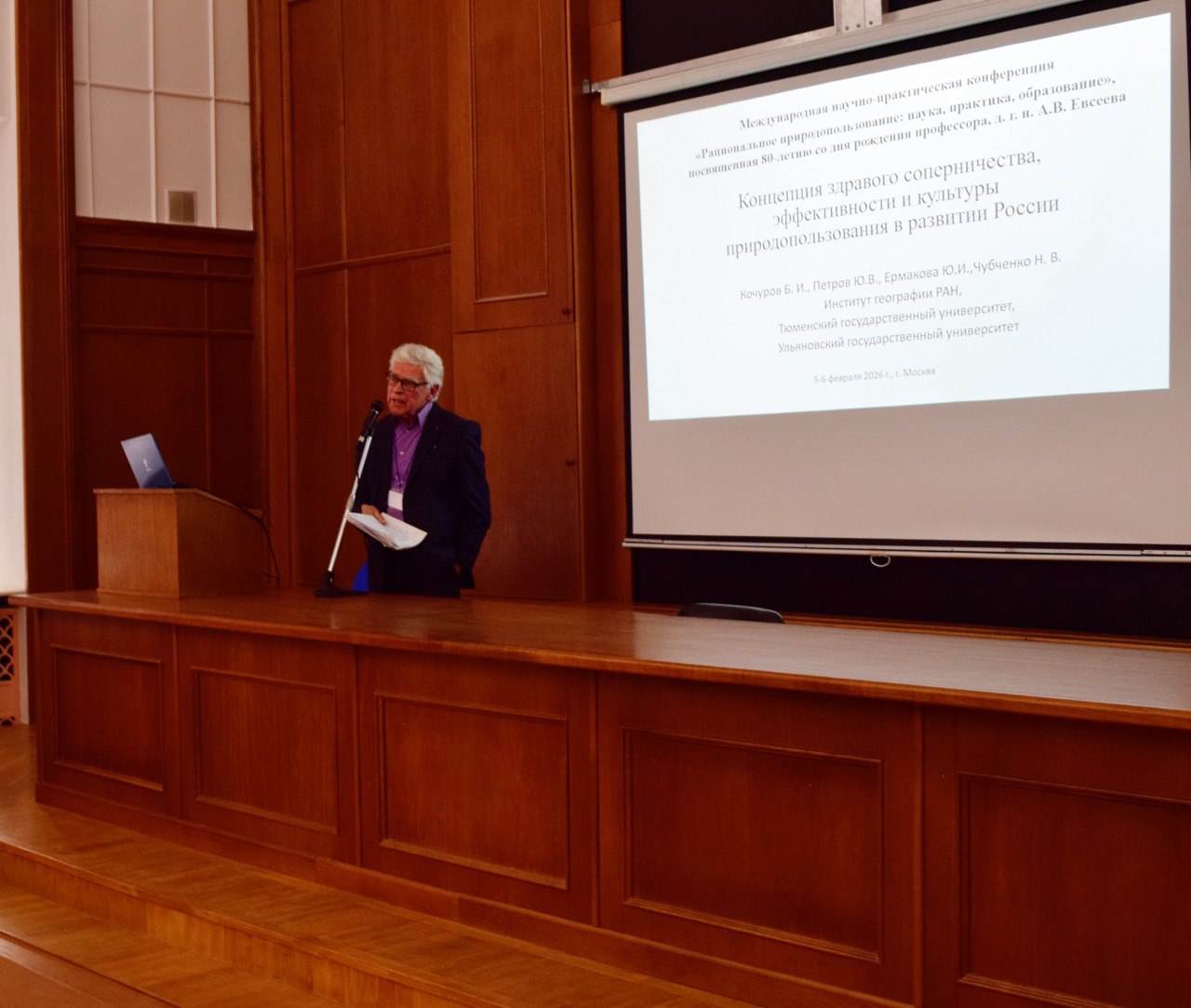 С 5 по 6 февраля 2026 года по инициативе кафедры рационального природопользования на географическом факультете МГУ проходила Международная научно-практическая конференция «Рациональное природопользование: наука, практика, образование», посвященная 80-летию со дня рождения профессора, д.г.н. А.В. Евсеева.